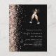 Para uma elegante festa de aniversário 50th (ou qualquer idade). Um clássico fundo negro. Decorado com rosa dourado falso brilho e um par de flautas. Personalize e adicione um nome e detalhes da parte. 1 folha = 1 convite impresso de borda a borda.