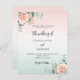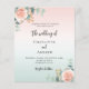 Um rosa de giz de ouro e fundo verde de gradiente. Decorados com ouro-rosa e flores cor-de-rosa escamoteadas, flores rosas e folhas de eucalipto de cor aquosa verde, galhos, verde e borras de ouro falsas. Personalize e adicione seus nomes e detalhes. Fundo: rosa ouro e gradiente verde. 1 folha = 1 convite impresso de borda a borda.