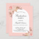 Um quadro de arco decorado com ouro rosa e flores, rosas e grama-pampas cor-de-rosa-pincel. Personalize e adicione um nome e detalhes.