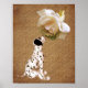 Cãozinho dalmata bonito cheirando uma rosa branca delicada em um olhar texturado, poster de papel velho.