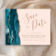 Este elegante orçamento salva a placa de data apresenta uma borda azul-lacrimejante agate cortada com falso rosa dourado. O texto personalizável combina um script de manuscrito empoeirado de rosa, fontes em copperplate e itálico em um plano de fundo cor-de-rosa pincelado. O verso apresenta um design de gate rosa e lacado correspondente.