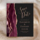 A borda esquerda deste elegante casamento moderno salve o cartão de data apresenta uma borda de cor-d-água borrifada, aparada com falso brilho rosa. O texto personalizável combina a letra rosa-rosa, a letra copperplate e a letra itálico num fundo preto de ardósia. O lado inverso apresenta um design de burgundy e ouro-rosa.