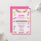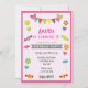Convite do aniversário com design da terra dos doces e combinação de cor cor-de-rosa vibrante.