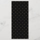 Estes cartões de cardápio de na moda têm um fundo preto escuro e um texto de cor rosa dourado da moda. A tipografia elegante acrescenta um toque extra de rico. A parte traseira do menu apresenta um padrão pontilhado rosa a dourado igual.