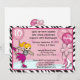 Convite do aniversário do patinagem no gelo (iceskating) em um impressão da zebra e em máscaras do rosa