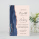 A borda esquerda deste elegante convite de casamento moderno apresenta um marinho azul de aquarela agate bordado com falso brilho rosa de ouro. O texto personalizável combina a escrita manual de cinzas de carvão, fontes em copperplate e itálico em um fundo cor-de-rosa pincelado. Adicione mais detalhes no verso, juntamente com um código QR para ajudar seus convidados a visitar seu site de casamento.