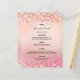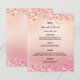 Um cartão de cardápio de casamento elegante e glamouroso. Personalize e adicione seus nomes, data e menu de casamento. Um fundo rosa de ouro e gradiente rosa, decorado com poeira falsa.