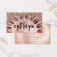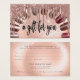 Certificado de presente de unhas rosa de ouro moderno e elegante. Design apresenta um conjunto de unhas, gotas de brilho rosa dourado, script de tipografia ''um presente para você'' a preto sobre fundo rosa dourado. Personalize com seus detalhes no verso.