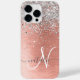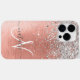 Personalize facilmente esta capa de telefone de design de chic moderna com brilho cinza bonito em prata em um fundo metálico escovado de rosa dourado.