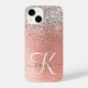 Personalize facilmente esta capa de telefone de design de chic moderna com brilho cinza bonito em prata em um fundo metálico escovado de rosa dourado.