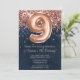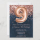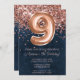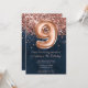 Marinho Dourado rosa Azul 9.º Convite de aniversário e rosa ouro elegante 9.º convite de aniversário para uma menina de 9 anos com escrevendo moderno de escrita e balões de folha divertida.