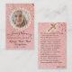 Cartão de oração totalmente personalizado com uma cruz decorativa na parte traseira e versos de oração que você pode personalizar. O cartão de oração vem com uma foto personalizável e personalizada e com um nome e data personalizados do funeral. O design apresenta um script e estilo de escrita manual/caligrafia junto com fontes elegantes e clássicas. Nossa loja também vem com uma variedade de outros cartões com cartões botânicos de oração funerária, cor-de-rosa e decorados florais, e cartões com brilho para atender a todas as necessidades. Além disso, você pode me contatar a qualquer momento se quiser qualquer personalização pessoal e adicional para suas cartas, eu estou aqui para te servir.