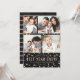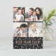 Anos novos de família bonitos cartões com fotos de férias com quatro fotos, e pontos de confete com brilho branco e rosa dourado. Personalizado com suas próprias fotos e nome(s). Fundo preto texturizado. [Nota, embora alguns elementos deste cartão tenham sido concebidos para se parecerem com uma falha dourada, não será utilizada nenhuma falha real no fazer dos convites - trata-se apenas de um efeito impresso.]