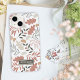 Maleta de padrão de folha de ouro de rosa minimalista iPhone 14 com um nome personalizado modelo. Um padrão botânico moderno e feminino em pinks e verdes que daria um presente na moda para a mãe no Dia das Mães, presente personalizado para o aniversário de uma filha, ou um presente único no Dia do Namorados para um namorada.