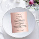 Um clássico cardápio de casamento. Um fundo de gradiente rosa ouro. Texto preto. Personalize e adicione seu nome, data e menu. Você pode adicionar mais texto, fotos no verso. 1 folha = 1 menu impresso borda a borda.