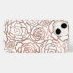Vestir seu telefone em uma folha de ouro rosa! A capa de telefone apresenta um padrão de latência floral de rosas e camellias em efeito de folha de ouro rosa sobre um fundo branco nítido e limpo. NOTA: o filme é uma imagem impressa.