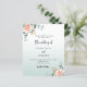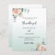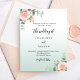 Um plano de fundo branco e verde. Decorados com ouro-rosa e flores cor-de-rosa escamoteadas, flores rosas e folhas de eucalipto de cor aquosa verde, galhos, verde e borras de ouro falsas. Personalize e adicione seus nomes e detalhes. Fundo: gradiente branco e verde. 1 folha = 1 convite impresso de borda a borda.