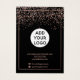 Rosa dourado moderno confetti e borda geométrica em uma tela de brinco de joias negras editável com marcadores de orifícios que você pode mover ou excluir. Adicione seu logotipo.