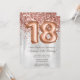 Convite de aniversário Dourado Silver 18º rosa e rosa-ouro elegante e moderno 18º convite de aniversário para uma menina de 18 anos com modernos roteiros escrevendo e balões de folha divertida.
