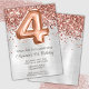 Rosa Dourado Prata 4.º Convite de festas de aniversário e rosa de ouro elegante convite de festas de 4.º aniversário para uma menina de 4 anos com roteiro moderno escrevendo e balões de folha divertida.