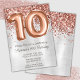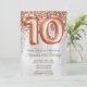 Convite de aniversário Dourado Silver 10º rosa e rosa-ouro elegante e moderno convite de aniversário 10º para uma menina de 10 anos com modernos roteiros escrevendo e balões de folha divertida.