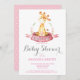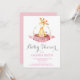 Cartão cor-de-rosa e cinzento do convite do chá de fraldas do girafa da menina. O chá de fraldas da menina convida. Flor floral e licença da aguarela. Para uma personalização mais adicional, clique por favor "personalizam-no" botão e usam-nos nossa ferramenta de design para alterar este modelo.