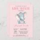 Cartão cor-de-rosa e cinzento do convite do chá de fraldas do elefante. Chá de fraldas do menino ou da menina. Para uma personalização mais adicional, clique por favor "personalizam-no" botão e usam-nos nossa ferramenta de design para alterar este modelo.
