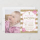 Rosa e convite Dourado do baptismo do brilho com foto feita sob encomenda. Baptismo da menina. Primeiro comunhão. Batismo. Dedicação da criança. Listras Dourados e brancas. Flor floral cor-de-rosa. Para uma personalização mais adicional, clique por favor "personalizam-no" botão e usam-nos nossa ferramenta de design para alterar este modelo.
