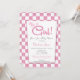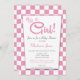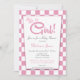 Um rosa giro É um convite para chás de fraldas para meninas com um fundo rosa e branco marcado.