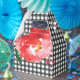 Rosa em Aquarela Caixa com Gable em Xadrez Preto e