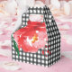 Caixas de favores cobertas com xadrez preto e branco e destacadas com uma rosa vermelha na frente e atrás nestas caixas de favores estilo gable com 4" de largura x 2,5" de comprimento x 5" de altura. (5 estilos de caixas DESENHADOS PARA VOCÊ - veja o link da nossa loja.) Perfeito para sua festa do Derby, chá de noiva temático do Derby, festa de aniversário e mais. Itens COMBINADOS em nossa loja.