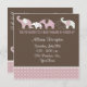 Os elefantes cor-de-rosa brincalhão alinham para dar boas-vindas a amigos e a família a um chá de fraldas no hon ou da mamã nova. Há uma abundância da sala adicionar demasiado a informação do resitration e da hospedeira na parte traseira.