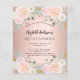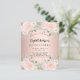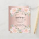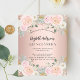 Um convite moderno, na moda e glamouroso para uma Quinceañera, festa de aniversário 15. Um fundo rosa dourado com flores rosas, rosas. O nome é escrito com um moderno estilo escrito à mão. Personalize e adicione os detalhes da sua festa. 1 folha = 1 convite impresso de borda a borda.