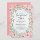 Convites personalizados de festa de aniversário de 70 surpresas, projetados com elegante cor-de-água rosa, floral, verde e pérolas. O texto é totalmente personalizável, portanto, design destes convites para qualquer pessoa de qualquer idade.