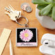 Este bonito chaveiro de margarida rosa-gerbera é personalizável, então você pode mudar a palavra "mãe" para qualquer coisa que quiser, e você pode mudar a cor, o tamanho e o tipo de fonte usados para o texto também.