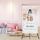 Fundo branco decorado com um grande rosa de ouro e rosa-rosa-rosa pincelada, flor, ouro e verde de eucalipto. Personalize e adicione uma data e nome/idade. O texto: Salvar a Data é gravado com um script de estilo com letra de tendência grande. 1 folha = 1 salve a data da borda impressa em borda.