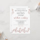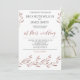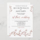 Convites de casamento com flores de efeito folha de ouro rosa e texto personalizado, quando o casal hospeda suas famílias, impressos em fundo branco