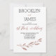 Convites de casamentos com flores, folhas e texto personalizado de efeito folha de ouro rosa, quando a noiva e o noivo acolhem, impressos em fundo branco