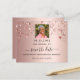 Um cartão de data glamouroso para uma festa de aniversário 50th (ou qualquer idade). Um fundo de gradiente rosa ouro. Decorado com estrelas. O texto: Salvar a Data é gravado com um script de estilo com letra de tendência grande. Personalize e adicione uma foto. 1 folha = 1 salve a data da borda impressa em borda.