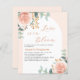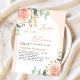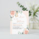 Um Amor elegante está em Bloom Chá de panela. Um fundo rosa dourado e um arco branco colorido. Decorados com rosas de cor aquosa e verde de eucalipto. 1 folha = 1 convite impresso de borda a borda.