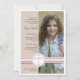 Um belo esquema de cores rosa pastel e bronzeado apresenta uma design cruzada e uma foto vertical da sua filha, criando um bonito convite para reunir família e amigos para sua celebração especial.
