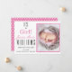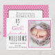 Comemore o início da vida para sua nova menina precioso e compartilhe as notícias com a família, amigos e vizinhos enviando este anúncio de nascimento bonito e moderno para uma garota. Este anúncio de nascimento de uma menina apresenta o texto "É uma garota!" em cores de preto e rosa. Personalize com a foto de sua filhinha e as estatísticas de natalidade. Coloque uma nota pessoal na parte de trás do cartão.