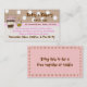 Cartão de visita lunático do divertimento feito em bolinhas e em listras tan, brancas, e cor-de-rosa. Um arco cor-de-rosa doce e uns trabalhos de arte bonitos do grampo de um bolo e do bolo do copo decoram a parte dianteira deste grande cartão. Um vale do estilo do entalhe no verso. Aperfeiçoe para uma loja da padaria, a loja do partido, ou um padeiro feito sob encomenda independente. Personalize os campos do texto para personalizar para o senhor mesmo ou sua loja. Para uma escala inteira de produtos de harmonização clique sobre minha relação conhecida e olhe na seção chamada Negócio Solução.