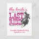 Sim, haw! É hora de celebrar uma última vez antes que esta vaqueira seja apanhada! É a última viagem da noiva antes de se estabelecer, também conhecida como uma solteira ou uma festa de galinha. Design apresenta uma vaqueira correndo em seu cavalo com texto e estrelas distantes da escrita ocidental e gorda. Perfeito para um evento temático ocidental ou country. Mostrada numa combinação de rosa quente e rosa mais macio. Também disponível no estado do Texas, em vermelho e azul. Produtos correspondentes disponíveis.