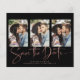 BUDGET Art Deco Rosa Dourado Manuscrito Salve a data Cartão com fotos múltiplo em uma fonte elegante e que evoca um toque romântico manuscrito. Na parte de trás está um design de estilo geométrico, estilo deco de arte, em folha de rosa de ouro em giz, sobre fundo preto. Projetado para usar três de suas fotos favoritas para personalização adicional. Adicione facilmente seus nomes e datas para um design verdadeiramente personalizado. **O nosso documento sobre o ORÇAMENTO é menor, mais leve e mais delicado, mas ainda é bonito! Não se esqueça dos envelopes!** Se você precisar de ajuda ou itens correspondentes, entre em contato conosco em cedarandstring@gmail.com.
