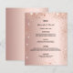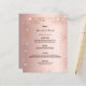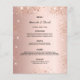 Um menu de casamento elegante. fundo rosa dourado, decorado com faíscas falsas. Modelos para seus nomes, data e menu de casamento.