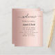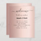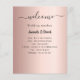 Um clássico programa de casamento e cardápio. Um fundo de gradiente rosa ouro. Texto preto. Personalize e adicione seu nome, data e programa e menu. 1 folha = 1 menu/programa impresso borda a borda.