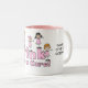 Uma caneca bonito com figura fêmeas de cinco varas que vestem o texto cor-de-rosa e cor-de-rosa que lê o "rosa para uma cura!". Esta caneca da consciência do cancro da mama pode ser fácil personalizado no ponto com um nome ou o outro texto de sua escolha.