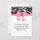 Laço rosa elegante com centro de diamante modelo de convite de festa zebra rosa para RSVP. Este RSVP de zebra rosa chique funciona muito bem para convite de aniversário de zebra rosa, convite de casamento de zebra rosa, convite de chá de bebê de zebra rosa, convite de bat mitzvah de zebra rosa e qualquer outra ocasião especial. Adicione seus detalhes na frente e no verso simplesmente escolhendo o botão laranja "Personalize!" para começar a adicionar os detalhes do seu evento, estilo de fonte, tamanho e cor da fonte e texto. Por favor, note que todos os desenhos de convite que você encontrará na Zazzle são gráficos impressos em papel liso sem joias, laços, relevos, rebaixamentos ou peças ou partes adicionais.