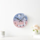 Deixe o decorador em você sair! Os relógios de parede são uma bela e barata adição a qualquer quarto. Este relógio bonito usa as cores de tendência do rosa quartzo e do azul de serenidade, com sotaque de flor branca. \ Este design está disponível em 3 tipos de relógio de parede, dois redondos e um quadrado. Clock Corner é um compro de Design Scarebaby, e é apoiado pela garantia Zazzle.
